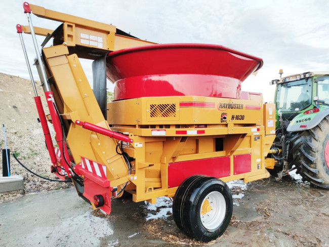 Le H1030 est le dernier modèle de la famille des broyeurs à bol Haybuster. Il est équipé d’un système de relevage du bol, d’un broyeur de grande capacité logé sous l’arrière du bol. Il possède également une double vis qui permet d’évacuer efficacement les matériaux vers le convoyeur repliable hydrauliquement. Le H1030 requiert un tracteur d’une puissance minimale de 150 à 315 CV. Le nouveau régulateur électronique évite toute surcharge du tracteur et de la machine, ce qui permet un broyage efficace et régulier.