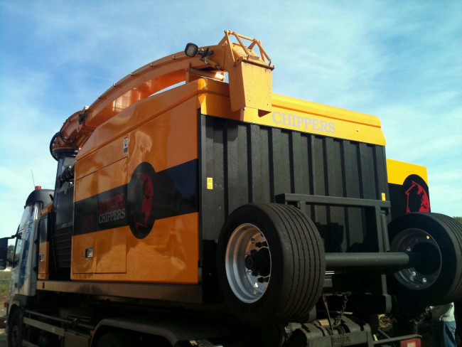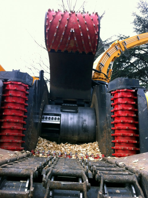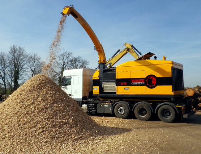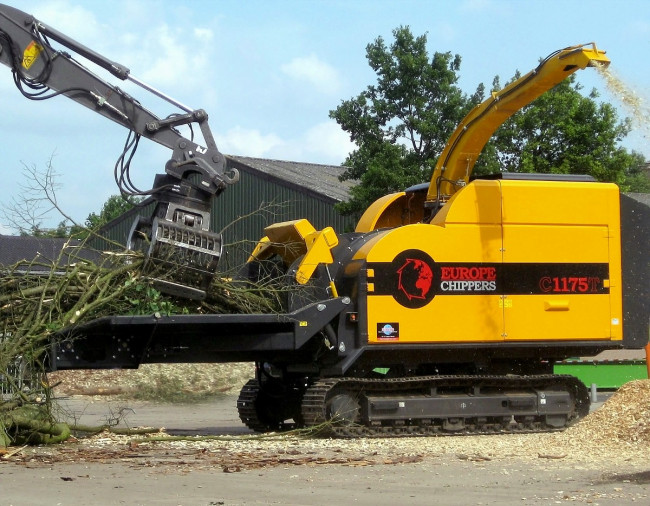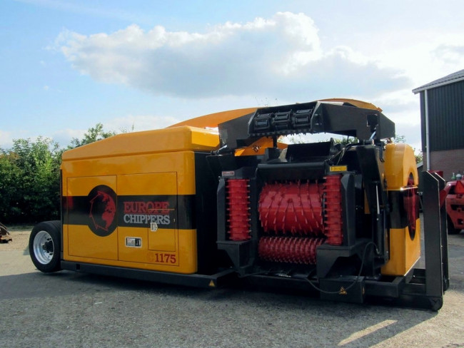 La déchiqueteuse bois EUROPE CHIPPERS C1175 est entraînée par un moteur CATERPILLAR de 520 CV , 630 CV ou 770 CV. Capacité de production jusqu’à 160 m3/H suivant le produit et les conditions de travail.