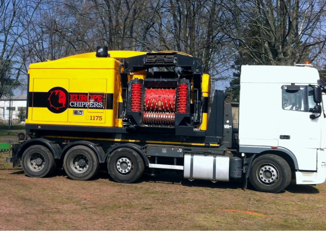 Le broyeur déchiqueteur Europe Chippers EC1175 est conçu pour la production de plaquette de qualité. IL traite les troncs (jusqu’à 70 cm de diamètre), les rondins, les branches, les tailles, les déchets de scierie, les écorces, les fagots, etc…