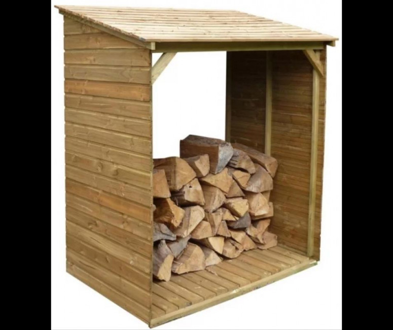 - Le revêtement de l’abris bûches est en clins bois de 15 mm.