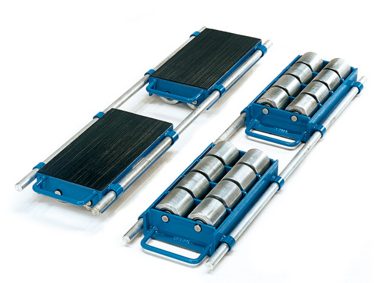 Nos patins rouleurs sont capables de déplacer des charges jusqu’à 2.4 tonnes en toute sécurité, ils sont connectés par deux barres d’acier qui forment un patin réglable.