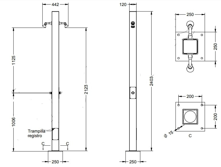 Camping. Douche extérieure pour plage piscine avec presto tempo. Pas nécessaire eau chaude ou solaire.