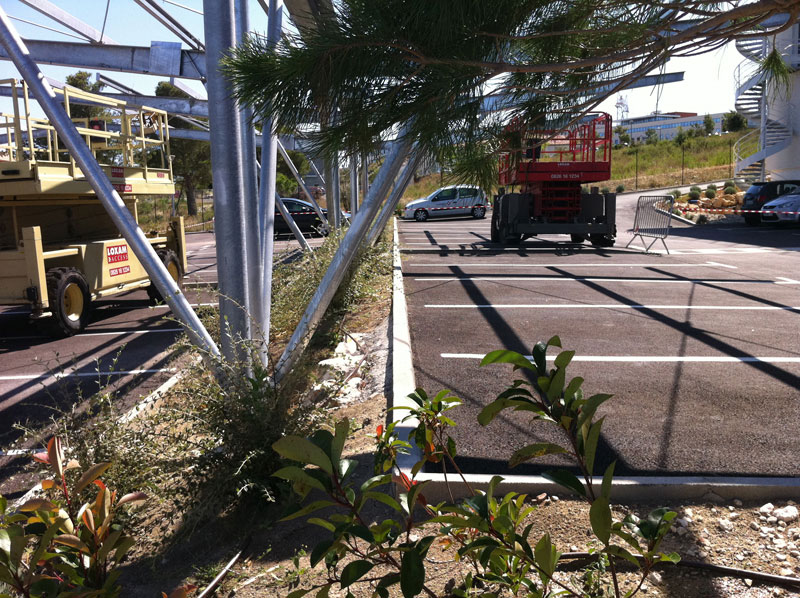 - 8 ombrières à deux places, chacune mesurant 24 mètres de long.