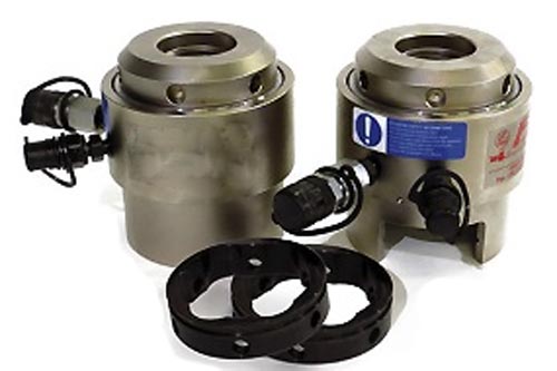Un tendeur hydraulique est un vérin fonctionnant à 1500 bar et permettant d'exercer un effort de traction dans un boulon.