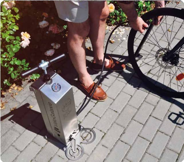 Elle transforme vos aménagements en véritable station de gonflage fonctionnelle, au service des cyclistes.