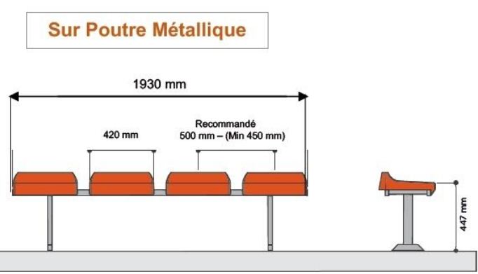 Nous souhaiterions remplacer nos assise de tribune. Pourriez-vous me faire parvenir une devis pour l"achat de 240 sièges (sans dossier) qui seront fixés directement sur les gradins en béton. Fixation par point d"ancrage central renforcé avec plaque d"acier et nervures de renfort (anti vandalisme). Vous en remerciant par avance, Bonne journée à vous, Cdt