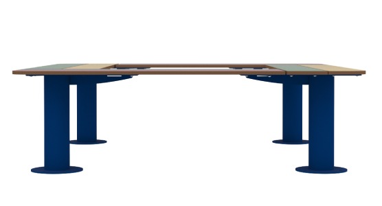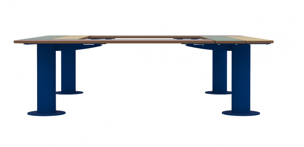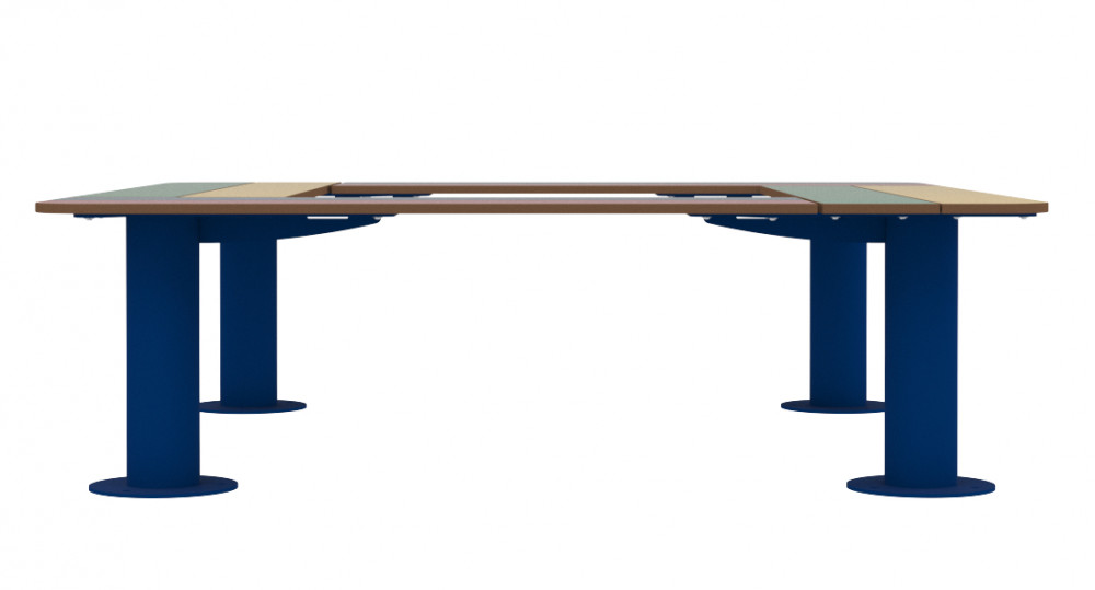 Elle offre 8 places assises sur un plateau de 1200 x 1200 mm, avec une hauteur de 350 mm adaptée aux enfants, pour créer un véritable point de rassemblement sécurisé et convivial.