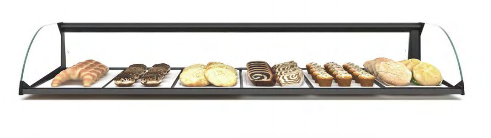 Cette vitrine d'exposition neutre permet d'exposer avec un maximum de visibilité vos viennoiseries, sandwichs, snacks et buffets.