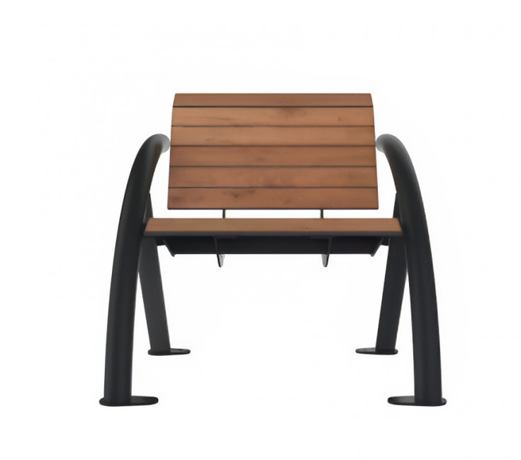 Les accoudoirs intégrés jouent un double rôle : ils structurent visuellement le banc public en HPL et offrent un appui pratique pour s’asseoir et se relever.
