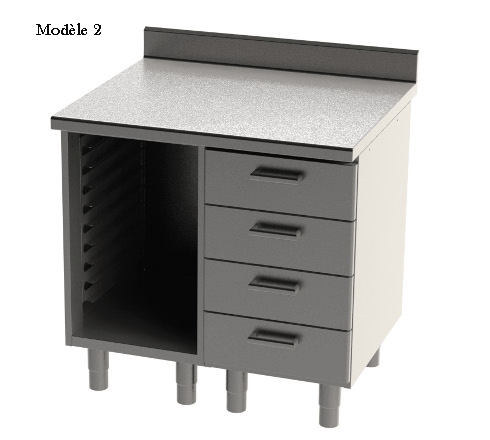 - Sur pieds inox - Sur roulettes