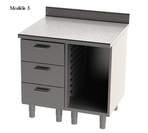 3 tiroirs + 1 bac