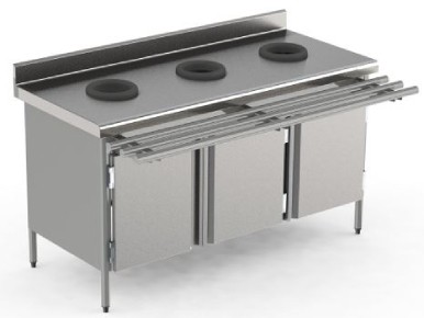 Réalisé en inox AISI 304L, doté d’un dessus adossé renforcé avec jusqu’à 4 trous vide-déchets .