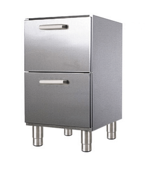 Ce meuble bas à 2 tiroirsen inox pour plus d’hygiène.