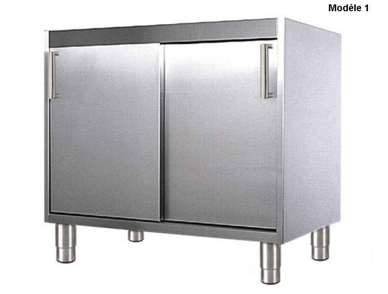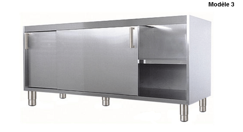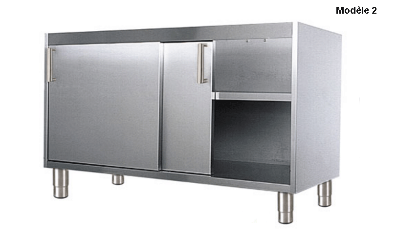 Deux portes coulissantes avec un piètement soit en inox ou roulettes à platine pour plaire à vos goûts.