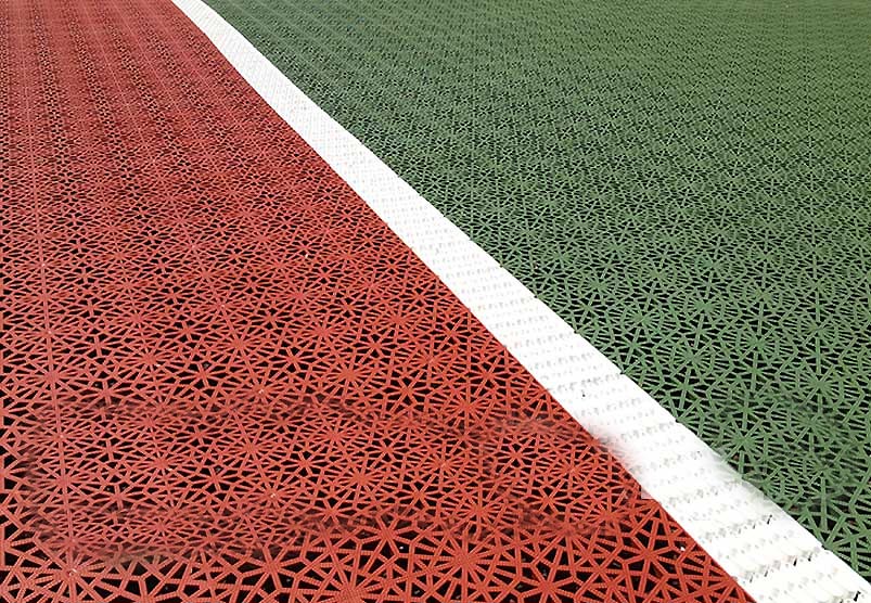 Les dalles terrain de tennis en Polypropylène 100% Recyclable ont une dimension 30 x 30 cm - Épaisseur de 14 mm.