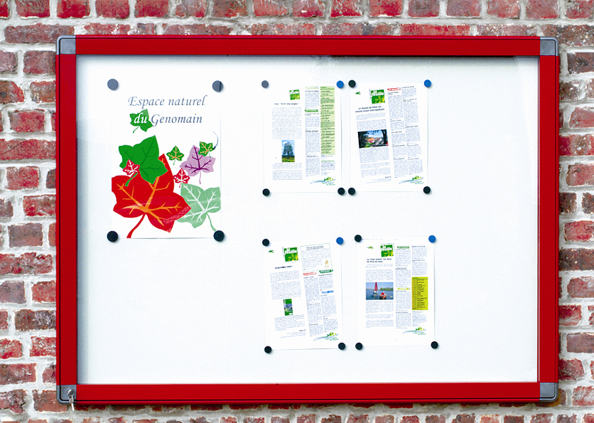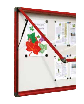 Cette vitrine murale pour extérieur a un profil alu anodisé ou laqué avec des coins arrondis injectés gris.