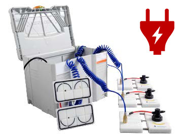 - Version MOBILE incluant 4 étriers de jointure et une pompe à vide électrique.