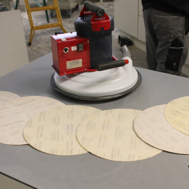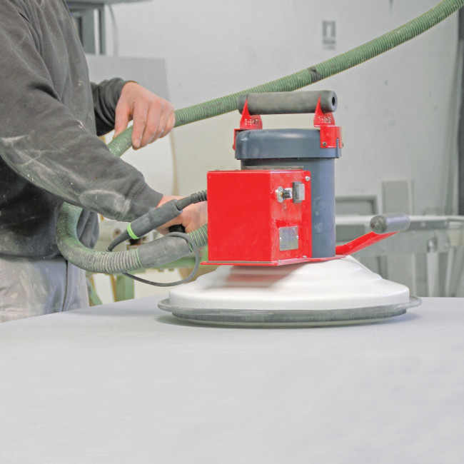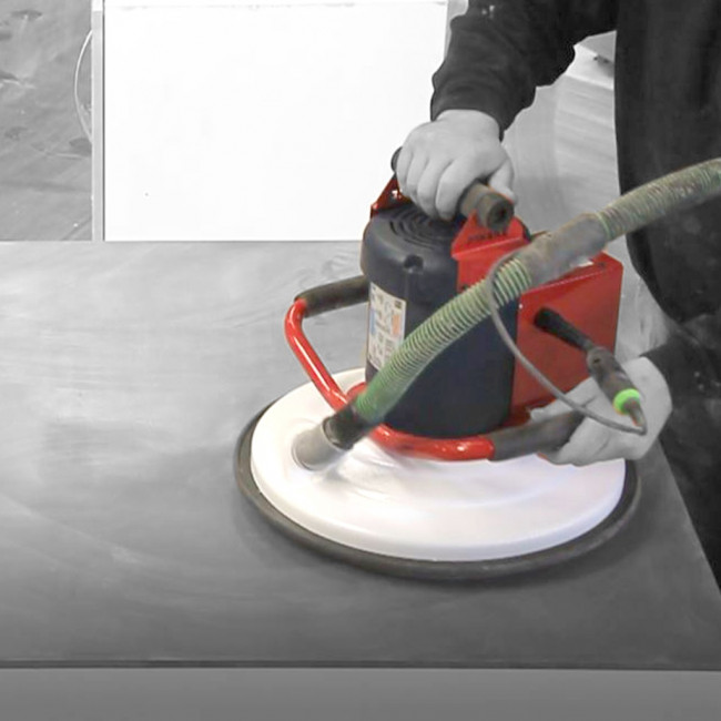 La ponceuse est constituée d’un plateau rotatif à disque, d’un moteur électrique, d'un interrupteur et régulateur, de 3 pognées et d'un système d'aspiration adaptable.