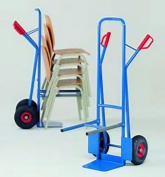 Disponible en deux modèles, le diable permet de transporter jusqu’à 300 kg de chaises :