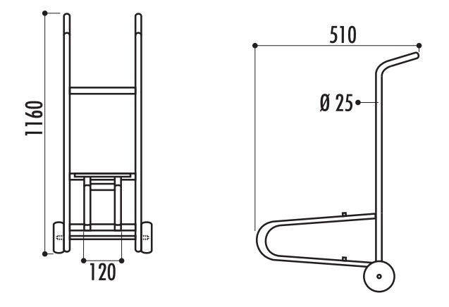 Avec 120 x 510 x 1160 mm, notre diable trouve facilement sa place dans vos espaces de stockage, même les plus restreints.