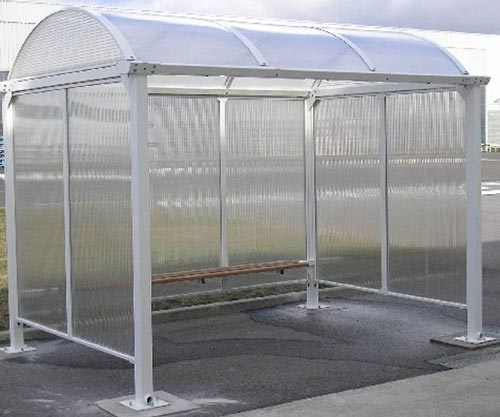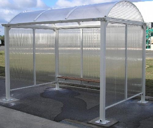 Son toit arrondi en polycarbonate alvéolaire incolore laisse passer la lumière, tout en protégeant les voyageurs des rayons UV.