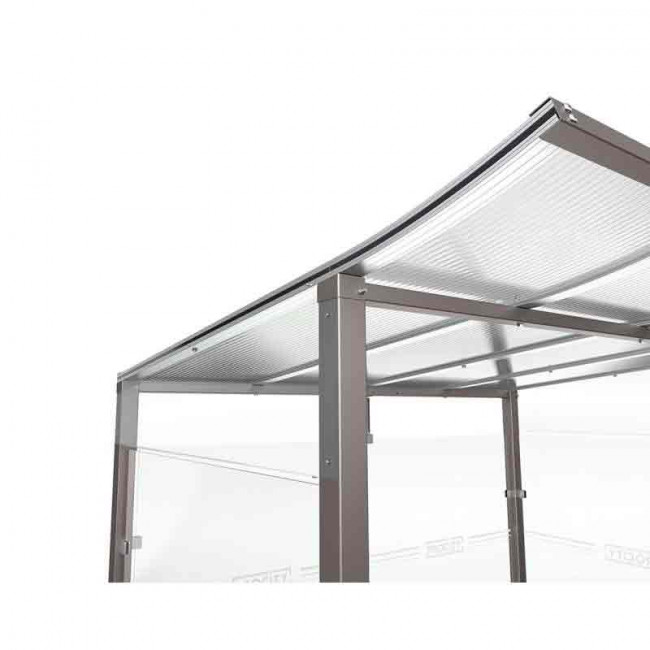 La couverture de votre arrêt de bus couvert associe profilés aluminium anodisés et panneaux polycarbonate alvéolaire de 10 mm. Cette conception technique assure une excellente résistance aux UV et aux chocs, tout en offrant une isolation thermique appréciable.
