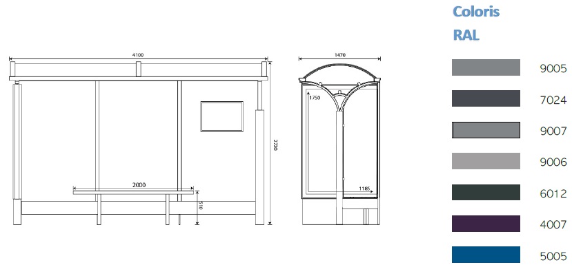 Abri pour arrêt de bus - Longueur 4,10 m - Avec caisson d'affichage