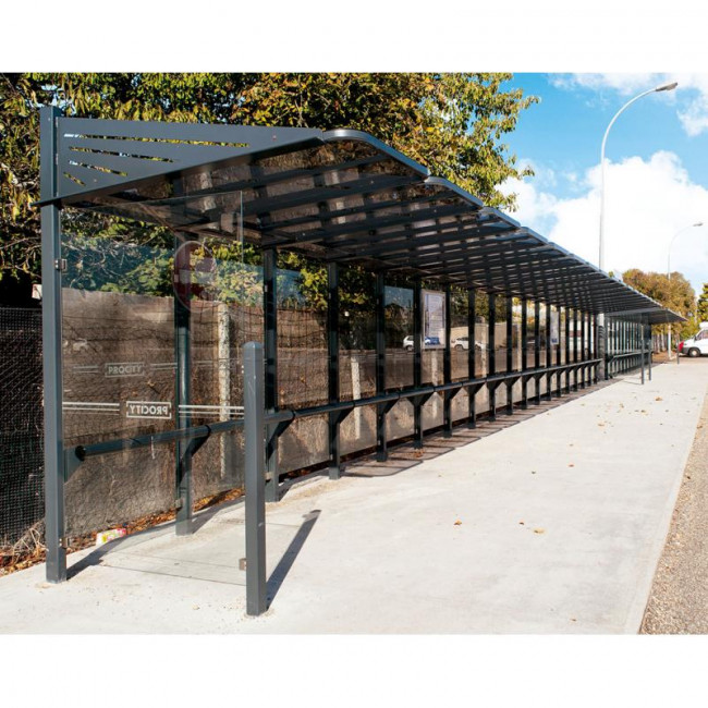L’abri bus Conviviale est un modèle en porte-à-faux sobre et élégant.
