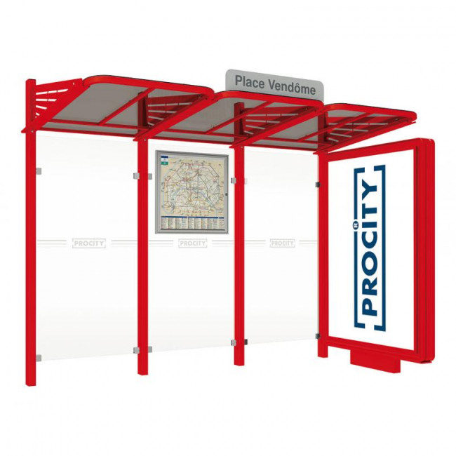 Parfaitement adaptable à tous vos besoins, cet abri bus est composé, en version standard, d’un bardage de fond d’une longueur de 3000mm. Avec une grande flexibilité, cet abri peut recevoir beaucoup d’options tels que des bardages latéraux, des vitrines, des caissons lumineux, des plaques d’arrêts…
