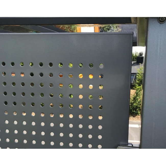 - Toiture : vitrage en PMMA fumé 6 mm insensible aux UV