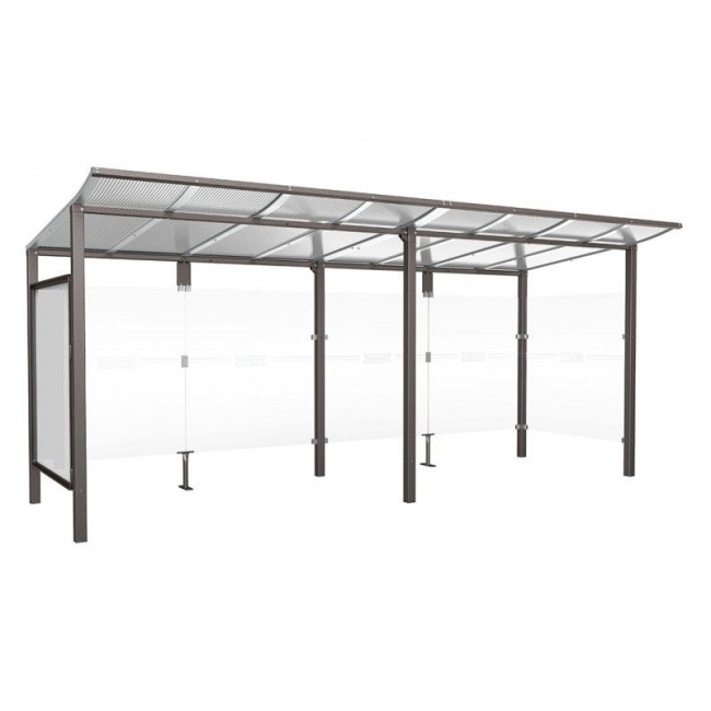 Les bardages latéraux et de fond sont réalisés en verre sécurisé de 5 mm, apportant visibilité et sécurité aux utilisateurs.