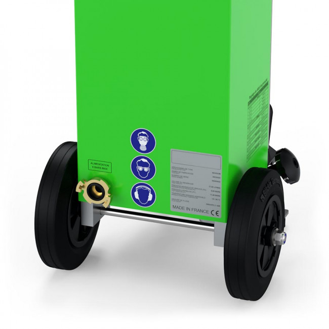 Avec ses poignées avant et arrière ergonomiques, ainsi que des roues de grand diamètre (Ø200 mm), l'aérogommeuse est facile à transporter sur tout type de terrain, même dans les espaces confinés.
