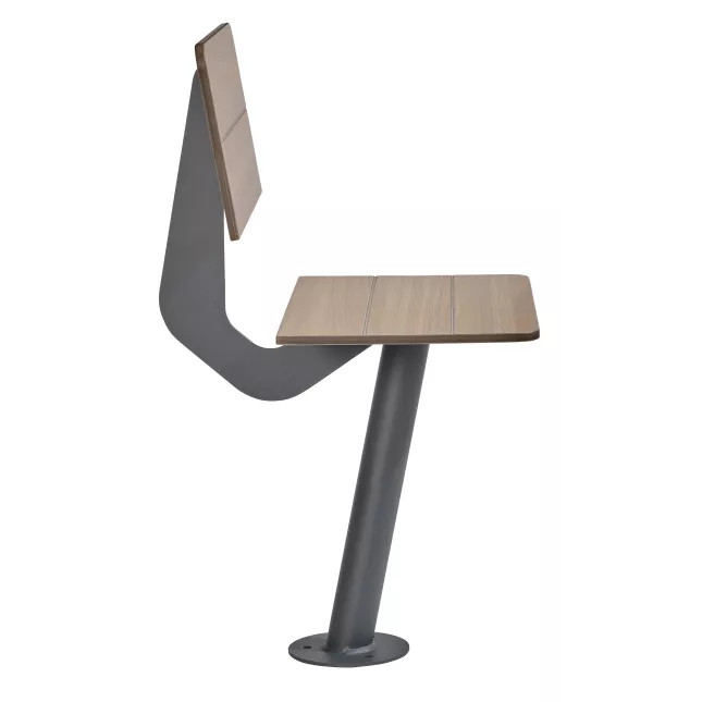 Cette configuration 1 place est parfaite pour ponctuer un parcours, créer des zones d’attente ou compléter un banc public compact HPL plus long.