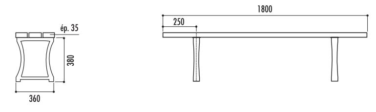 Cette banquette publique dispose d'une longueur de 1800 mm avec une hauteur assise de 380 mm, offrant un confort optimal pour les usagers tout en s’adaptant à différents types d’espaces publics.