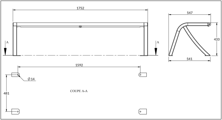 | Réf. TC :546064565 | Banc public | 1752 | 433 | Métal | Gris | Chevillage sur sol béton | 27.1 | -