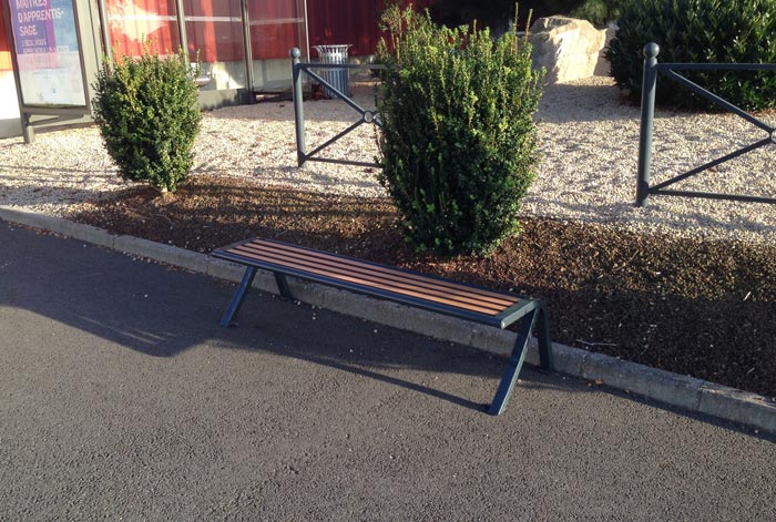 Il est composé de pied en tube acier 50 x 40 mm et des lames en stratifié compact HPL d’une épaisseur de18mm.