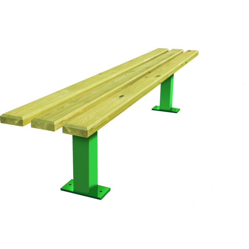 Ce banc sans dossier favorise la convivialité et l’accessibilité, tout en facilitant l’entretien et la maintenance.