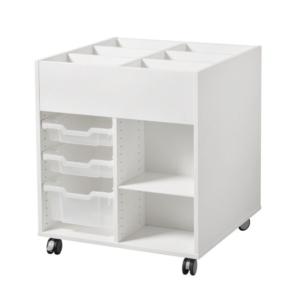 chariot de rangement modulable s’adresse aux écoles maternelles souhaitant organiser efficacement tout le matériel pédagogique.