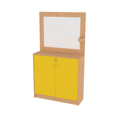 Cette borne accueil double porte pour crèche est un mobilier conçu pour les espaces d'accueil destinés à la petite enfance.
