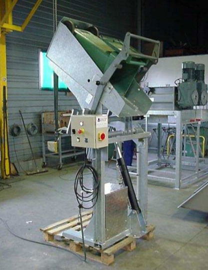 Le basculeur retourneur de conteneur/caisse palette pour hôpital est conçu pour un déversement de charges optimal grâce à sa hauteur de retournement jusqu'à 2864 mm pour une hauteur de déchargement de 1250 mm.