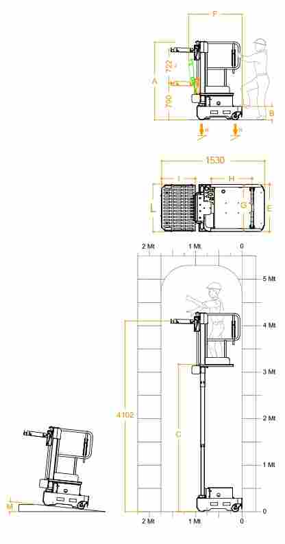 - Limiteur hauteur panier : Hauteur max. du sol 1,95 m (Cet accessoire permet d'utiliser la machine sans permis)