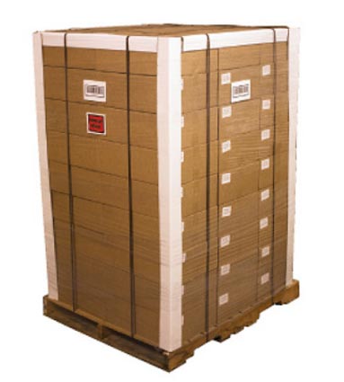 100% recyclables, les cornières kraft permettent de mieux supporter le cerclage et le gerbage de vos palettes.