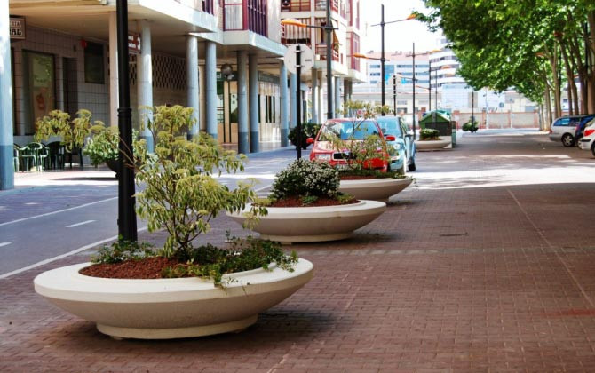 Jardinière contemporaine de ville en béton