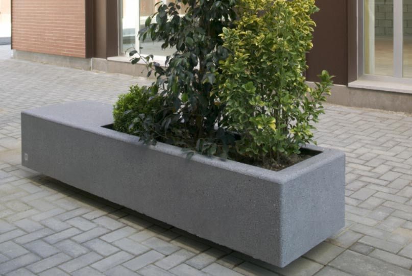 Cette jardinière en béton permet de planter des fleurs ou des arbustes afin d’aménager vos espaces verts.