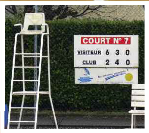 29/01/2016mettre des tableaux de score sur nos 6 terre battues et 2 résines pour notre grand tournoi début mars. (350 matchs). 2 grands modèles et 6 moyens manuel une seule face.