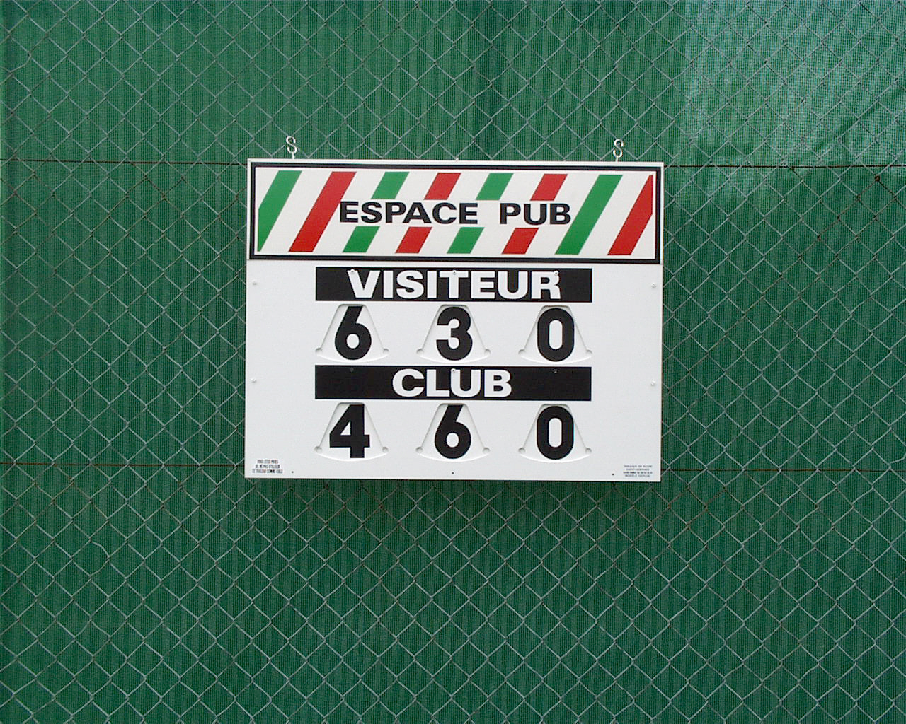 12/10/2018panneau d"affichage manuel de tennis en dimensions 60/122cm, 3 sets de 0 à 7, emplacement publicitaire de 24/122cm, compris 2 jeux de plaquette et conforme à la norme AFNOR NFS 52400. Merci de me contacter.