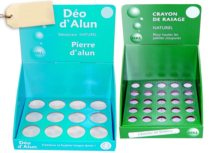 Exemple de produit : présentoir en carton "Deo d"Alun" bleu sous la référence fiche produit : 7211867