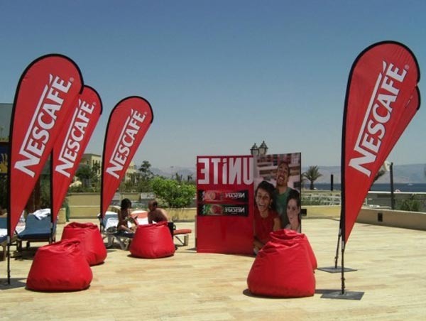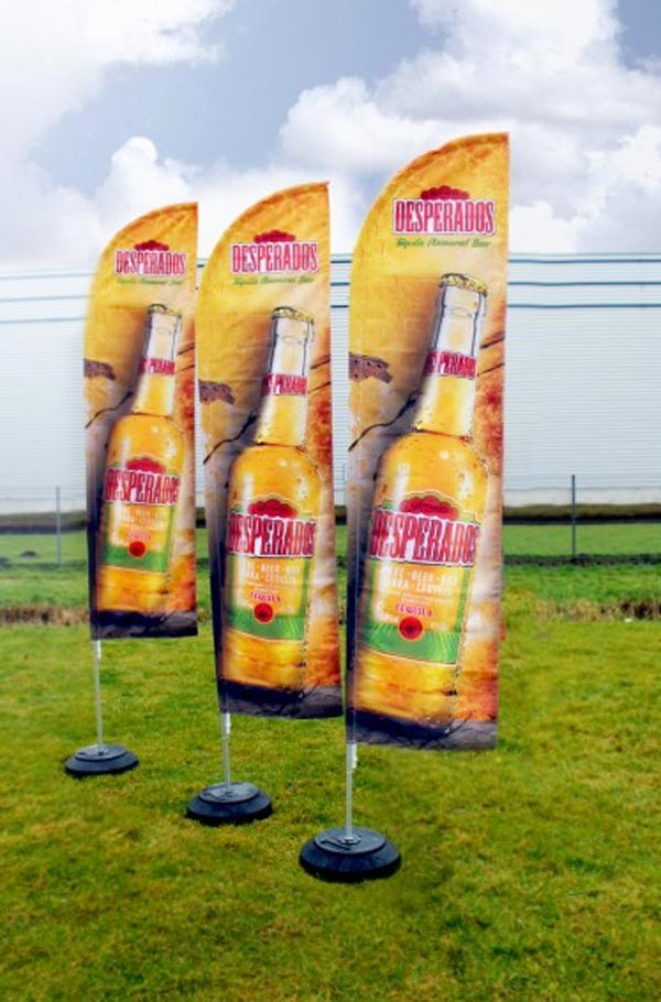 Utilisé en intérieur comme en extérieur, ce drapeau publicitaire dispose d'une voile anti-feu que l'on peut imprimer par sublimation aux couleurs de votre identité.