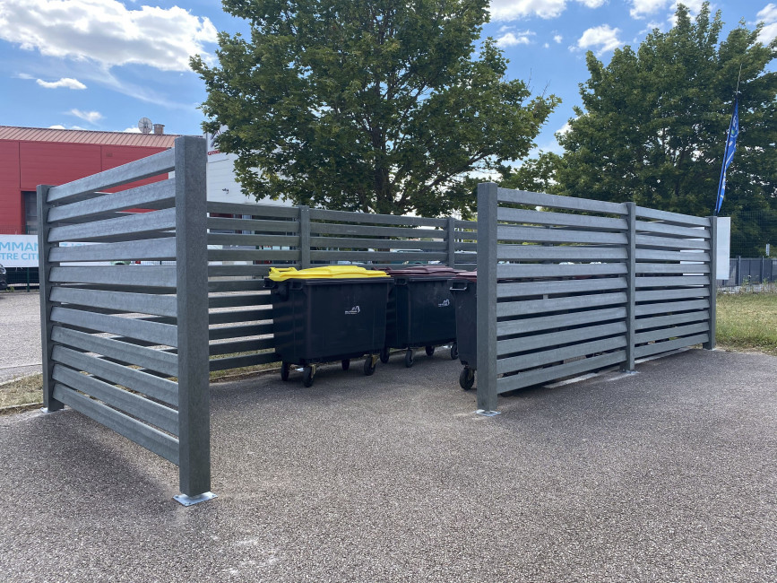 Ce cache conteneur en plastique recyclé est la solution idéale pour le stockage des produits recyclables et des poubelles.