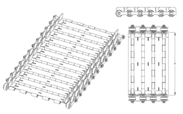 - Chaînes de convoyage hautement résistantes munies de roulettes et de douilles,